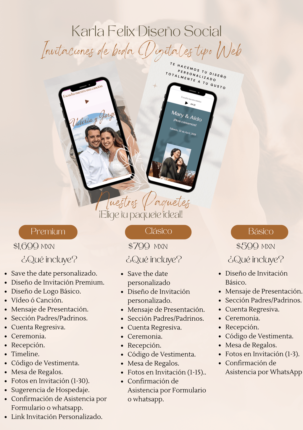 Porque no se trata solo de dar información, sino de emocionar, inspirar y anticipar lo especial que será tu día. Diseños pensados para hacer suspirar desde el primer clic.