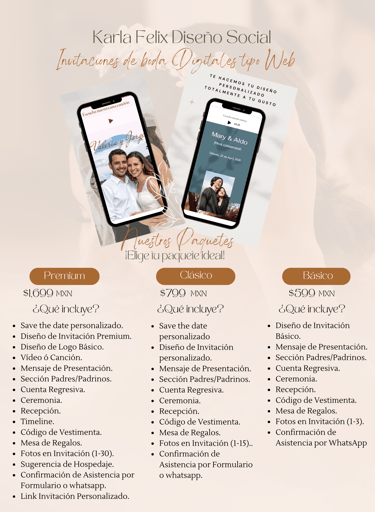 Comparte tu gran día con estilo, música y toda la magia de un diseño digital personalizado.